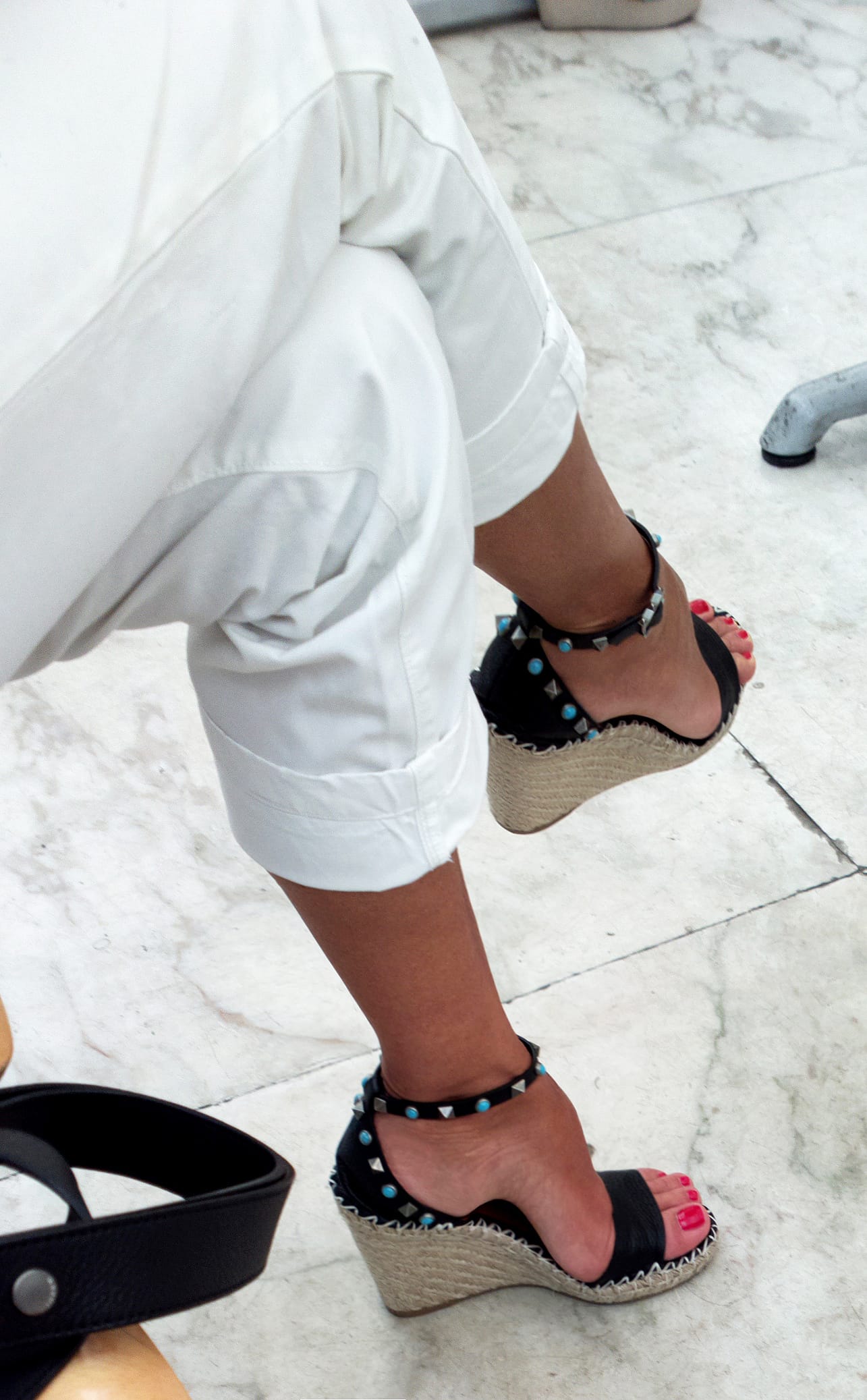 2017 half june un my haf city: sometimes waiting your turn at post-mall could be funny...mostly when you meet a fascinating blond girl with perfect pedicured bronzed arched feet in sexy rope wedges like this one...love her suckable red-polished toes too!!!