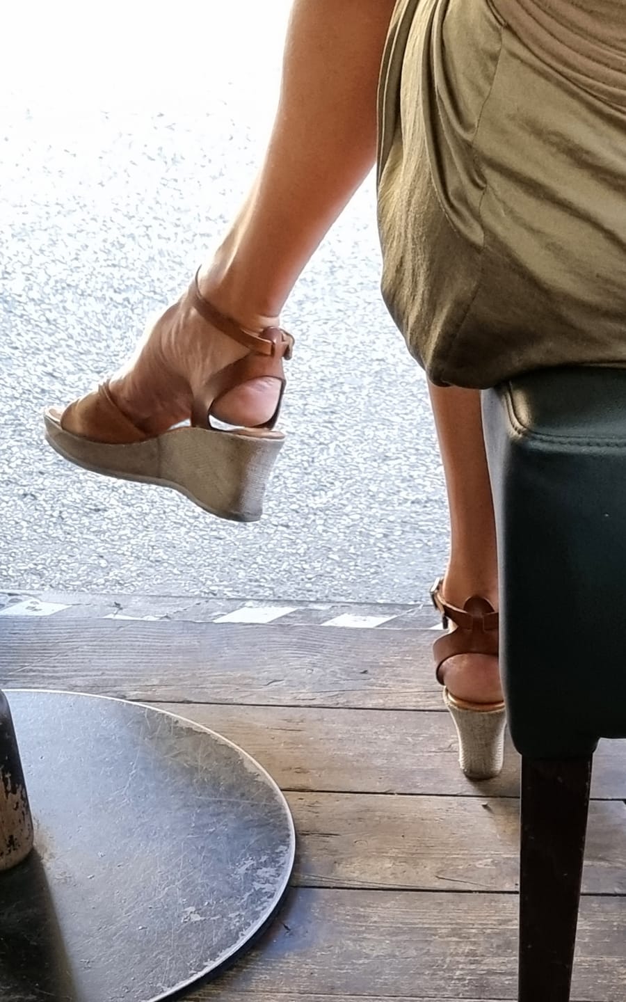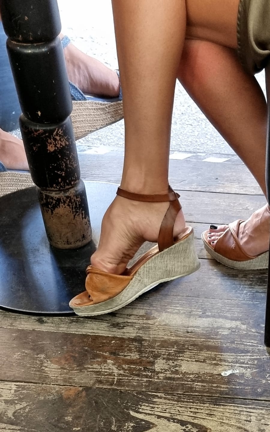 2022 half july in my haf city: she's a sexy high arched feet mature blond dancer and choreographer met in cafè, while she was having an aperitif with a friend. I was so lucky to find a table really close and enjoy more than a hour of "perfect and experienced haf show"...her pointing and scrunching action really killed me...this is a great example of great model even if in banal low-heeled wedges, isn't it!??
