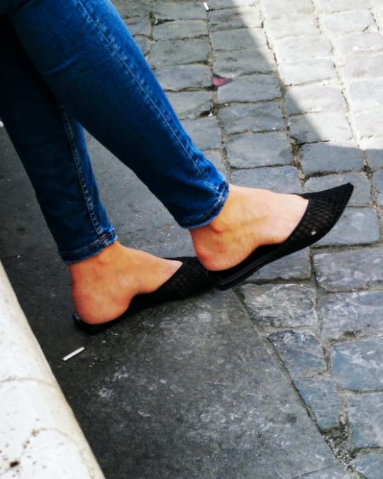 2019 half october in my haf city: met this nice girl while she was relaxing with still warm early autumn sunbeams. Skinny jeans and delicious chubby arched feet in flat transparent Zara slides...this style deserved some shots, wasn't it!??